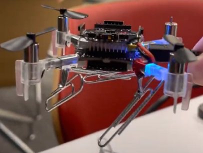 We added aluminum tape standoffs to the bottome of the CrazyFlie to enable us to pick up paperclips without interfering with the FlowDeck